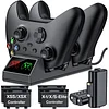 1. CONTROLLER CHARGER FOR XBOX ONE: Works with Xbox One/One X/One S/One Elite. This controller charger station comes with 2 pcs 1200mAh rechargeable batteries packs for xbox one,you don't need to buy extra batteries any more! Our controller charger station simultaneously store and charge 2 controllers. This stand model makes controller sit on in a regular position, which is better to connect with the controller