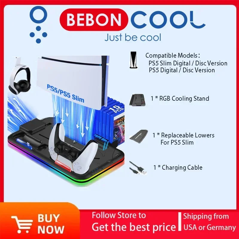 BEBONCOOL Cooling Stand for PS5 Slim Playstation5 PS5 console Charging Dock for Sony Playstation5 Gamepad Charger Controller Charger for PS5