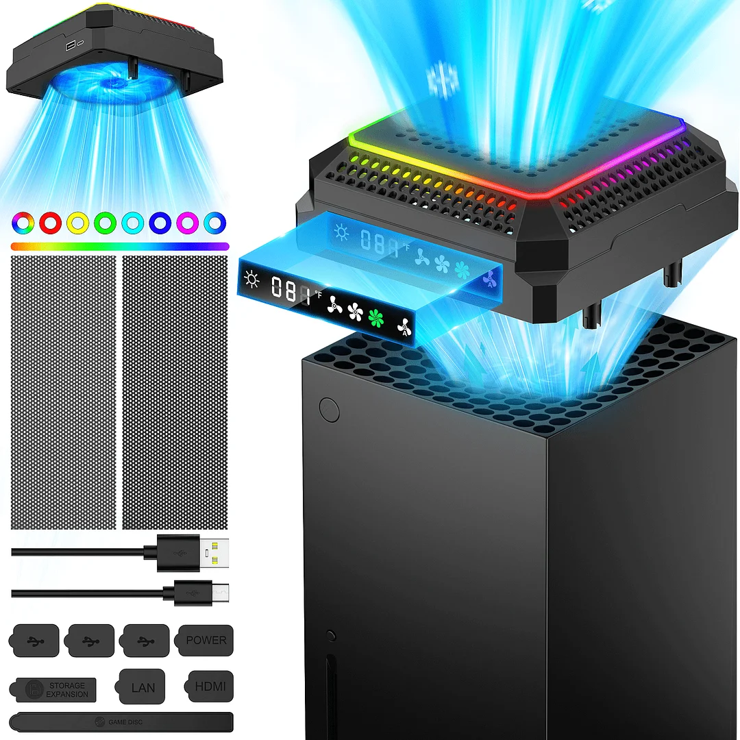 【Smart Temperature Control & Auto-Fan Technology】-Automatically switches to 1/2/3 speed modes based on console temperature (Auto Mode: <102°F = Low; 103–111°F = Medium; >111°F = High).Real-time temperature display on OLED screen ensures optimal cooling.