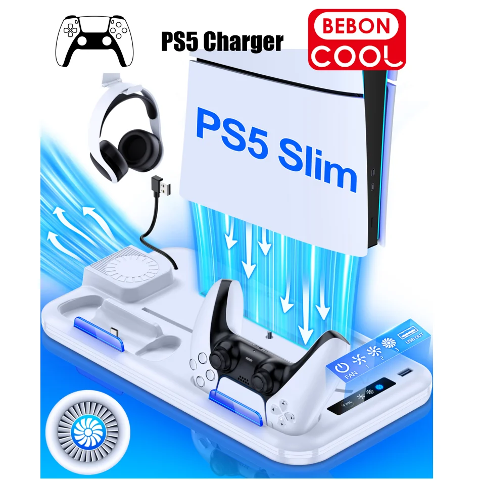 BEBONCOOL S4000 For PS5 Slim Disc/Digital Dual Fast Charging Cooling Stand Vertical Cooling Station For PlayStation 5