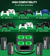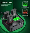 You will receive 4 x 1200mAh Xbox X series controller rechargeable battery packs. xbox battery charging station has projected green ambient lights around the bottom, the green ambient light blinks when charging and stays on when fully charged and in standby mode. All lights can be turned off with one click. When the lights are off, the battery charges normally. xbox one can be charged up to 2000 times per battery pack.