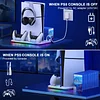 🌀 【3H FAST CHARGING & MULTIPLE POWER SUPPLY METHODS】 Come with 9.06inch C to C Charging Cable, PS5 stand with cooling fan and controller charger can fully charged 2 PS5 Dualsense controllers within 3H simultaneously. LED indicators clearly shows the charging status. Light off: Standby; Red: Charging; Blue: Fully Charged and LED will turn off after 10min. And playstation 5 charging station can be powered by your console or AC adapter(≥5V/3A), provide you more choices of charging methods!