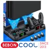 Console vertical stand + 2 cooling fans + dual controllers charging station + USB port + controller LED charging indicators + 12/16 games storage