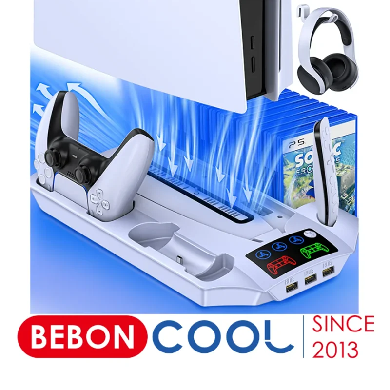 For PS5 Slim Stand Cooling Charging Station With Cooling Fan Dual PS5 Gamepad Charger With Headphone Holder Cooler For Playstation 5