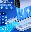 【PS5 Slim Console Cooling Station】This PS5 Slim stand has a built-in cooling fan with three-speed adjustment function, strong/medium/weak three-speed airflow can be selected and adjusted according to your needs, and the hot air will be pumped out from the bottom to dissipate heat from the PS5 Slim more effectively.