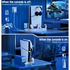 We are happy to introduced this PS5 cooling fan station which will maximize the life of your ps5 game console.No need to worry about console overheating from playing games all day and night,A perfect way to safely store and display all ps5 accessories and console.This beboncool ps5 cooler stand took into consideration both ps5 console digital edition as ps5 console disc version.and also work for new 2023 ps5 silm console. With a sleek and tidy design, PS5 remote charging station would be saves much space to keep your PS5 assecories like console, 2 Dualsense controllers, 13 game discs and headset organized,It will make the docking station more secure and balanced,compact size help to save space & increase gaming room’s space efficiency.Keeps all PlayStation 5 accessories nice and organized while maintaining a tidy look.