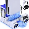 PS5 Stand with Cooling Fan and Dual Controller Charger Station for PS5 Console Playstation 5,PS5 Vertical Stand with 10 Game Slots, 1 Headset Holder, 1 Media Remote Storage,White