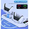 <3>There are two wireless ps5 charger station for both dualsense controllers charging at the same time,which fully charged from empty to 100% within 3 hours.