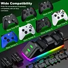 【Dual Charging Dock with RGB Light by Touch Control】Xbox charging station are colorful atmosphere light at the bottom of the XBOX charger, which matches the XBOX console very well. Dual Charging Dock with 9 RGB modes of soft light shows you the charging status but won’t bother your playing or rest